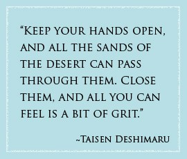 7. Open hands. Walk about in the world with open hands. It’s a simple practice. Your hands are open, and they are empty, ready to receive the world and all that comes, as it is. Your hands aren’t closed,